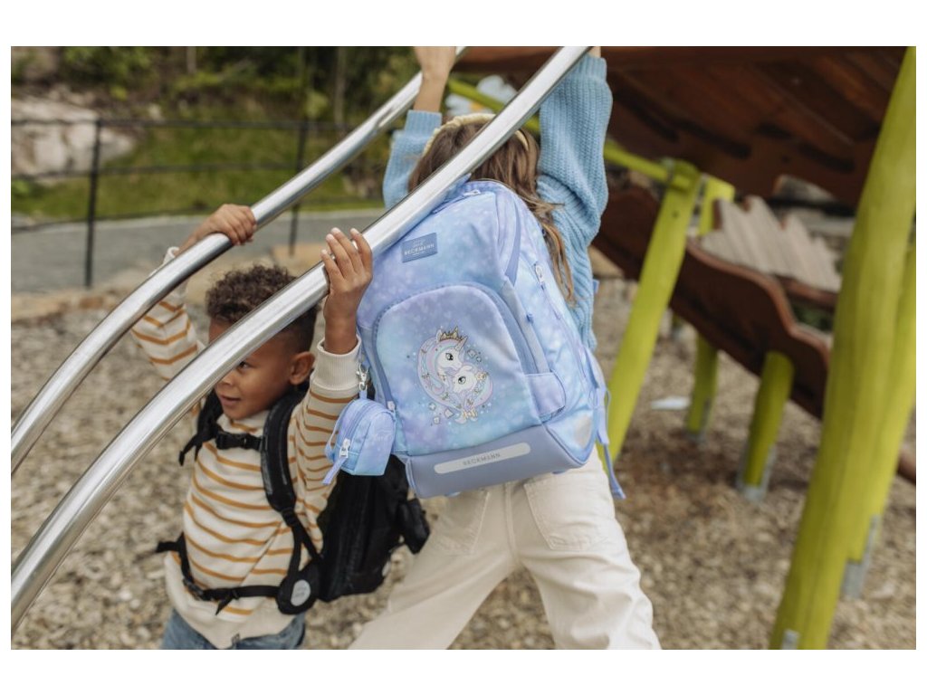- K školskému batohu potom môžete pomocou patentovaného systému pripojiť ďalší batoh, ktorý je ideálny na krúžky alebo výlety.