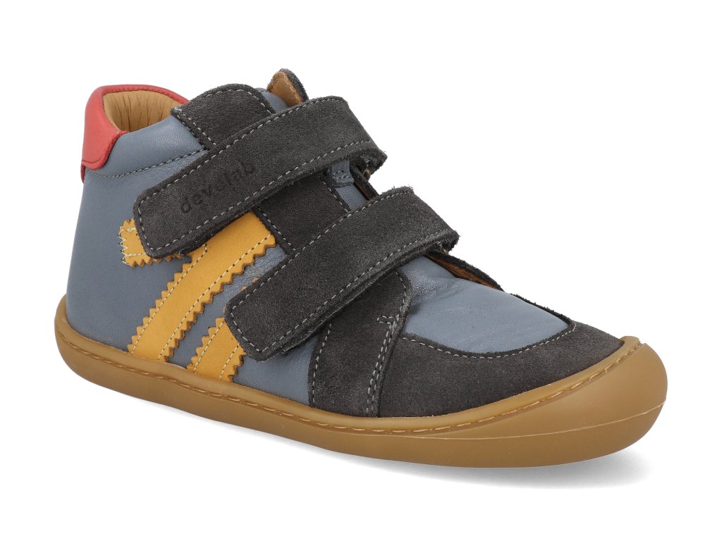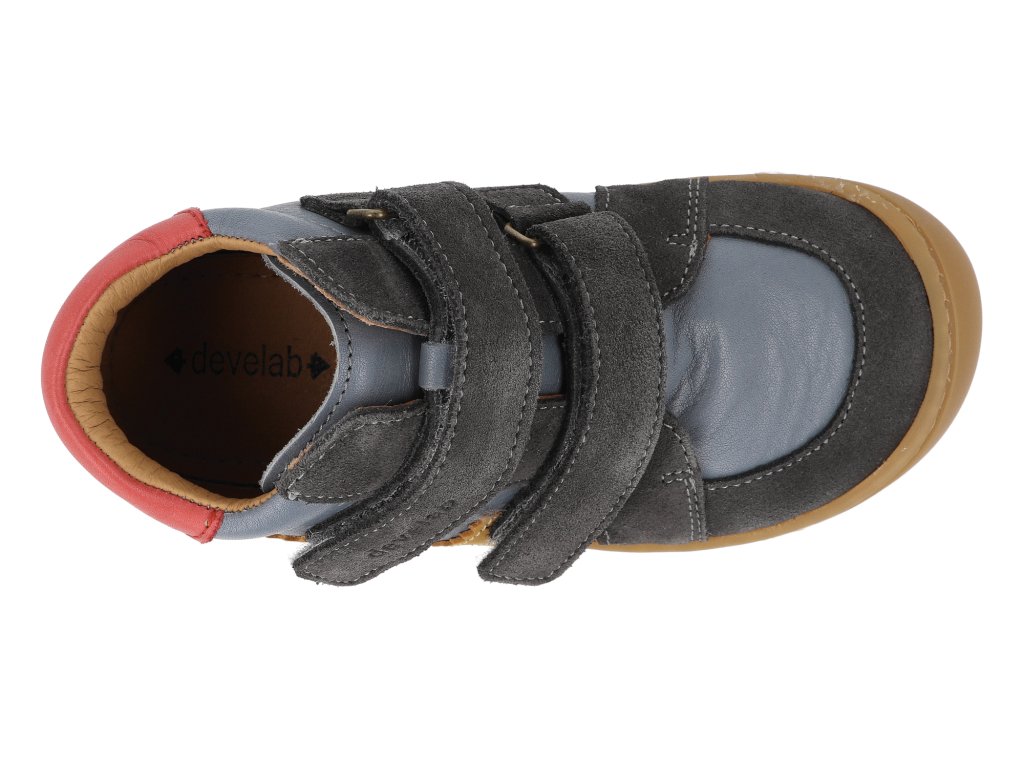 Detské členkové topánky barefoot Develab - Midcut 2 Grey Combi modré