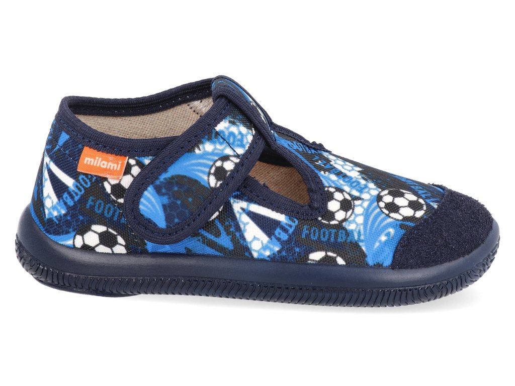 Priedušné detské papuče Milami sú mimoriadne ľahké a pružné. Pevný opätok a anatomicky tvarovaná penová stielka zaručujú pohodlie pri každodennom nosení a poskytujú potrebnú oporu detským nohám. Špička je chránená praktickým okopom, ktorý zabraňuje opotrebeniu pri hraní na koberci. Papuče majú flexibilnú podrážku, ktorá nezanecháva stopy na podlahe. Deti si ich rýchlo obľúbia vďaka veselému dizajnu a jednoduchému zapínaniu na suchý zips, ktoré zvládnu bez pomoci.
