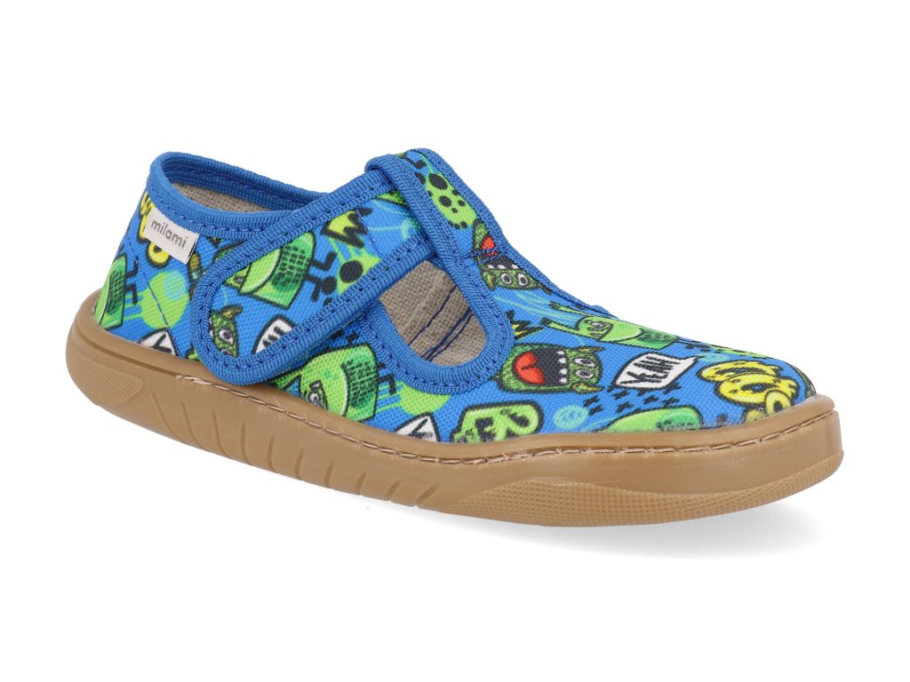 Detské barefoot papučky Milami podporujú zdravý vývoj chodidiel a prirodzený pohyb. Sú vyrobené z priedušnej tkaniny, ktorá zaisťuje optimálnu cirkuláciu vzduchu a pohodlie po celý deň. Vďaka svojmu extrémne ľahkému prevedeniu a vysoko flexibilnej podrážke umožňujú chodidlu voľný pohyb bez obmedzenia, čo prispieva k správnemu držaniu tela a rovnováhe. Malé deti si môžu samy ľahko zapnúť suché zipsy, čo podporuje ich nezávislosť doma aj v škôlke.