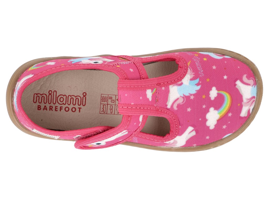 Detské barefoot papučky Milami podporujú zdravý vývoj chodidiel a prirodzený pohyb. Sú vyrobené z priedušnej tkaniny, ktorá zaisťuje optimálnu cirkuláciu vzduchu a pohodlie po celý deň. Vďaka svojmu extrémne ľahkému prevedeniu a vysoko flexibilnej podrážke umožňujú chodidlu voľný pohyb bez obmedzenia, čo prispieva k správnemu držaniu tela a rovnováhe. Malé deti si môžu samy ľahko zapnúť suché zipsy, čo podporuje ich nezávislosť doma aj v škôlke.