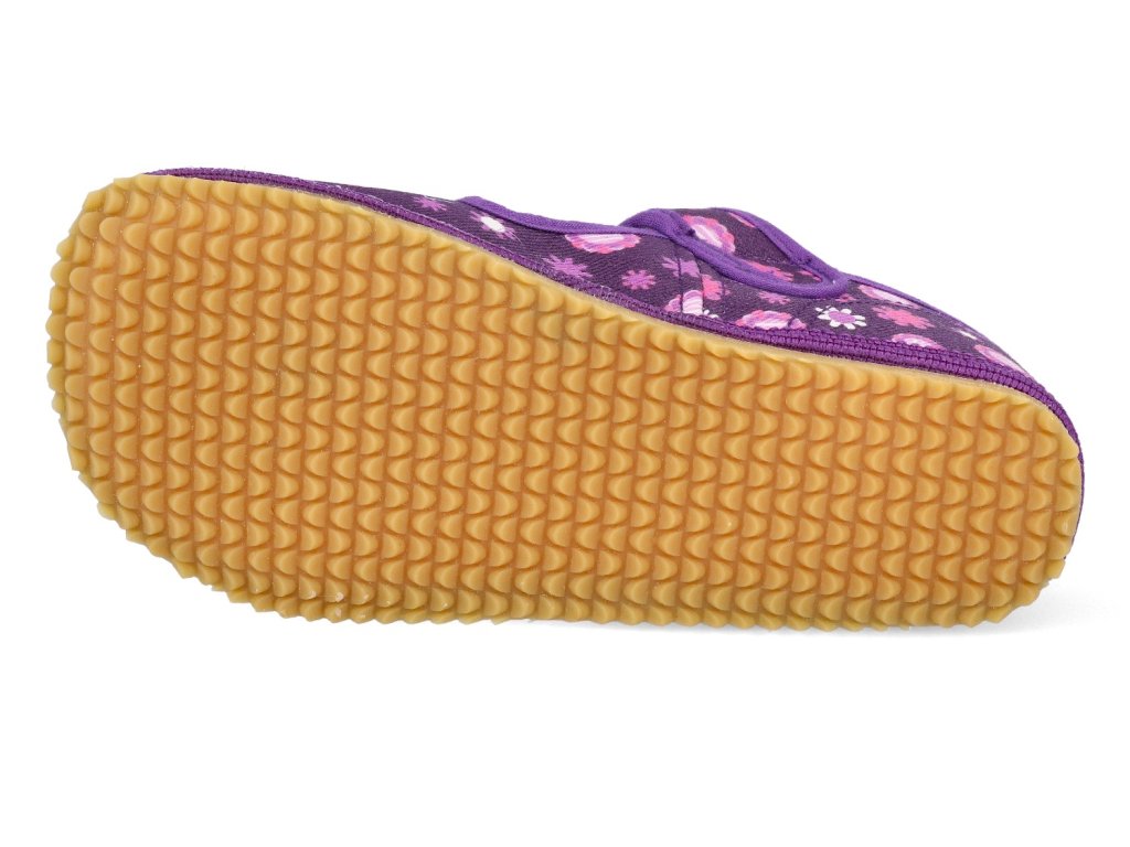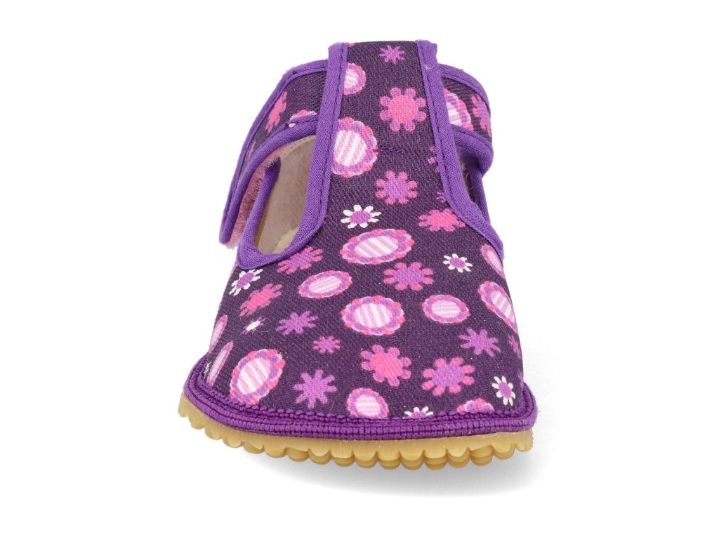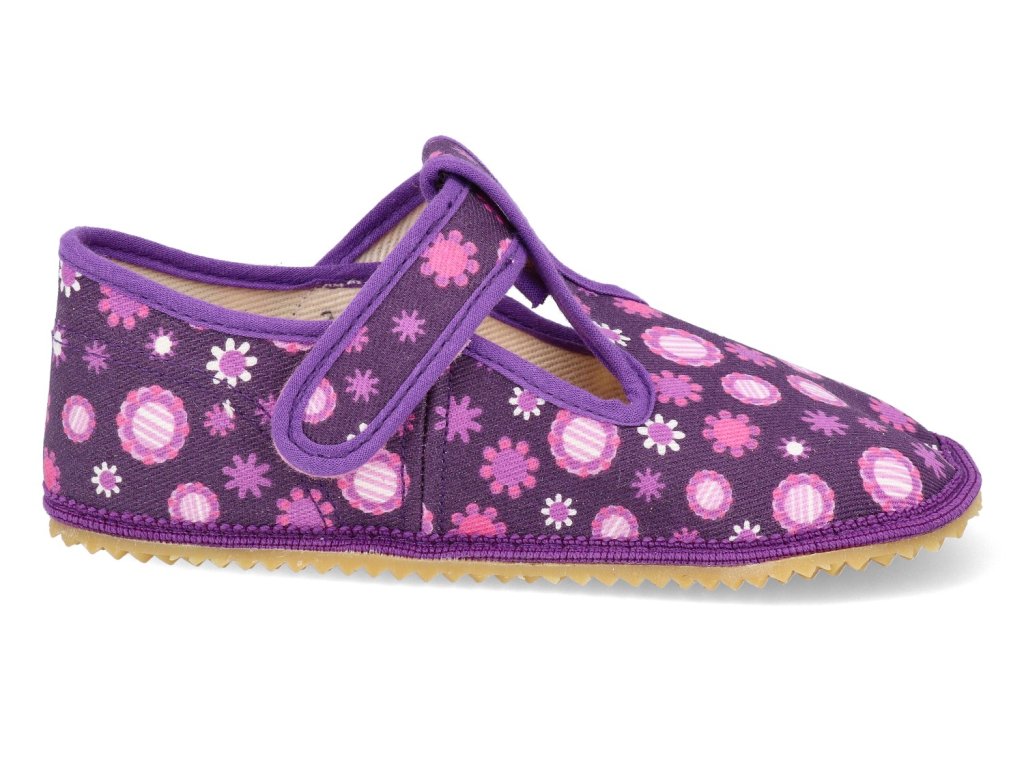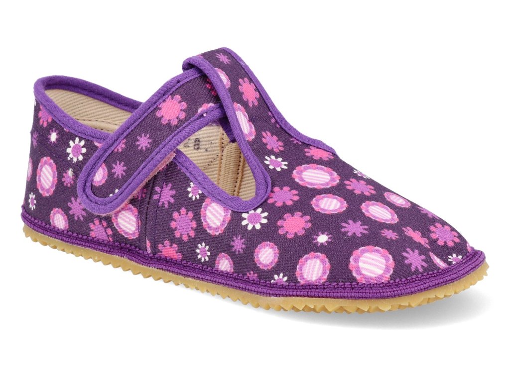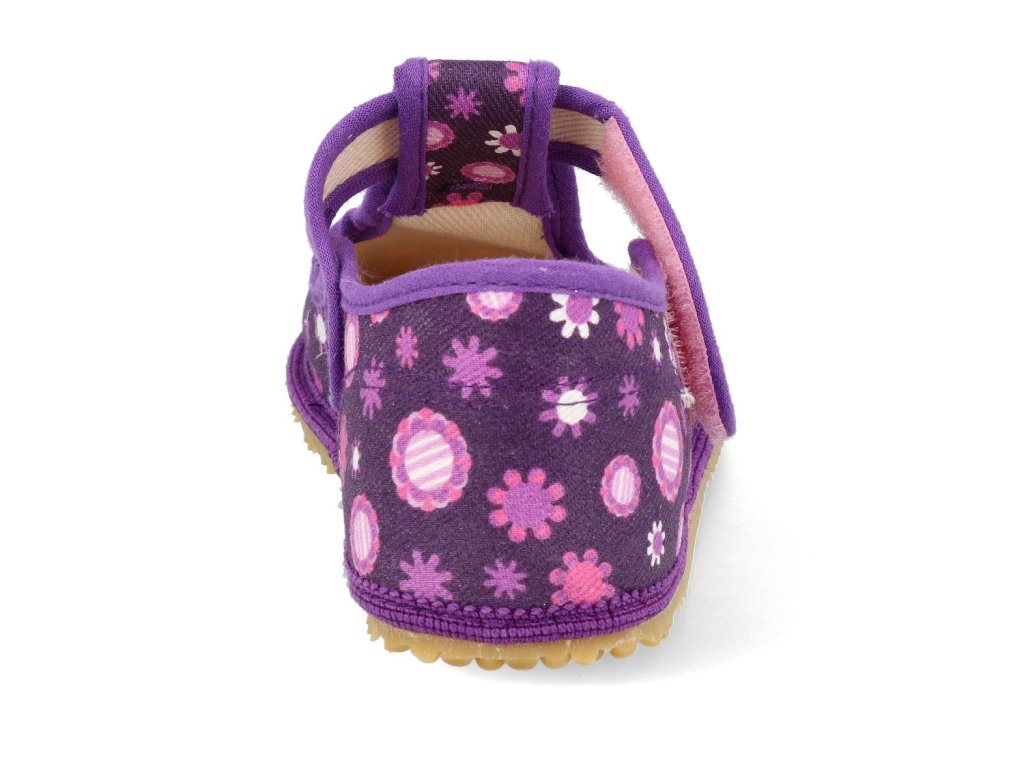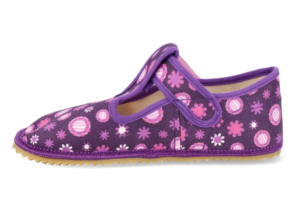 Barefoot dětské přezůvky Beda - Širší typ Fialové kvítko s pevným opatkem