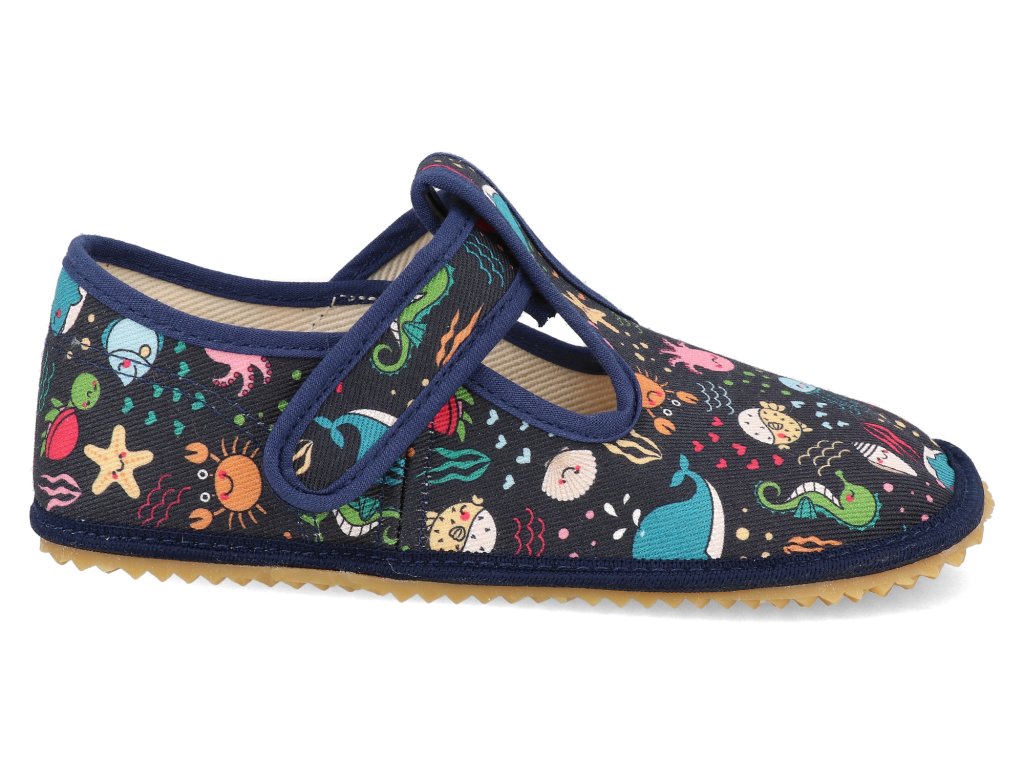 Barefoot detské prezúvky Beda - širší typ Sea World modré