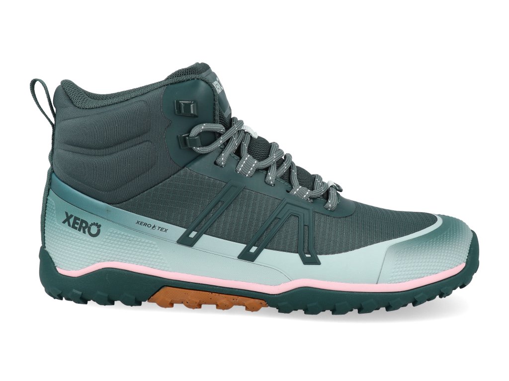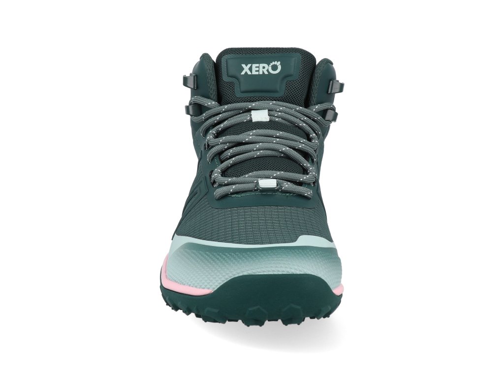 Barefoot dámske turistické topánky Xero shoes - Scrambler Trail Mid WP Sea Moss/Surf Spray zelené