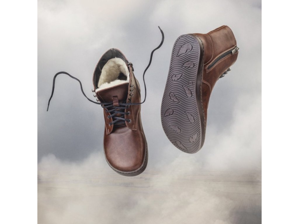 Barefoot zimní boty Peerko - Wegan Zipper Nut hnědé